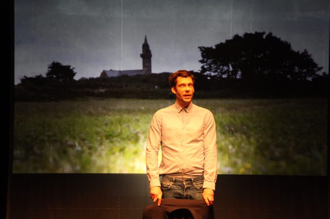 Michel Duchemin en représentation à l’Espace Ronsard du Lude dans “Où on va papa ?”