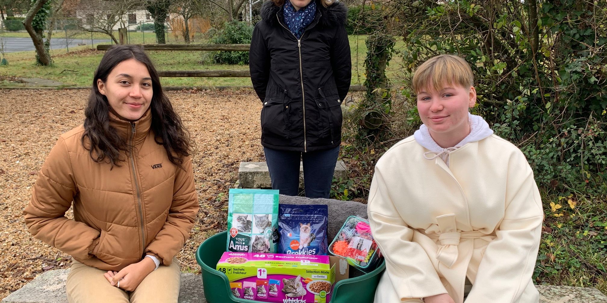 Marine Cochin, enseignante au lycée Nazareth à Ruillé-sur-Loir, et des élèves volontaires, dont Sarah et Mélody, organisent une collecte de dons pour le bénéfice de trois associations sarthoises de protection animale.