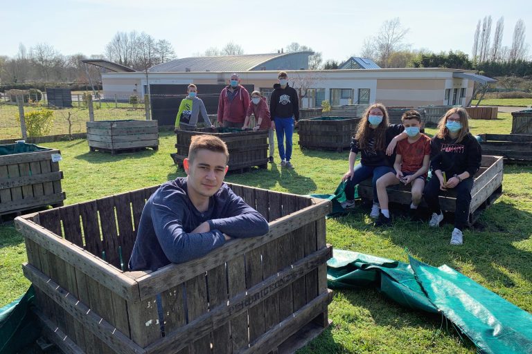 Ronan Constans, volontaire en service civique à la commune de Vaas, met en place des…